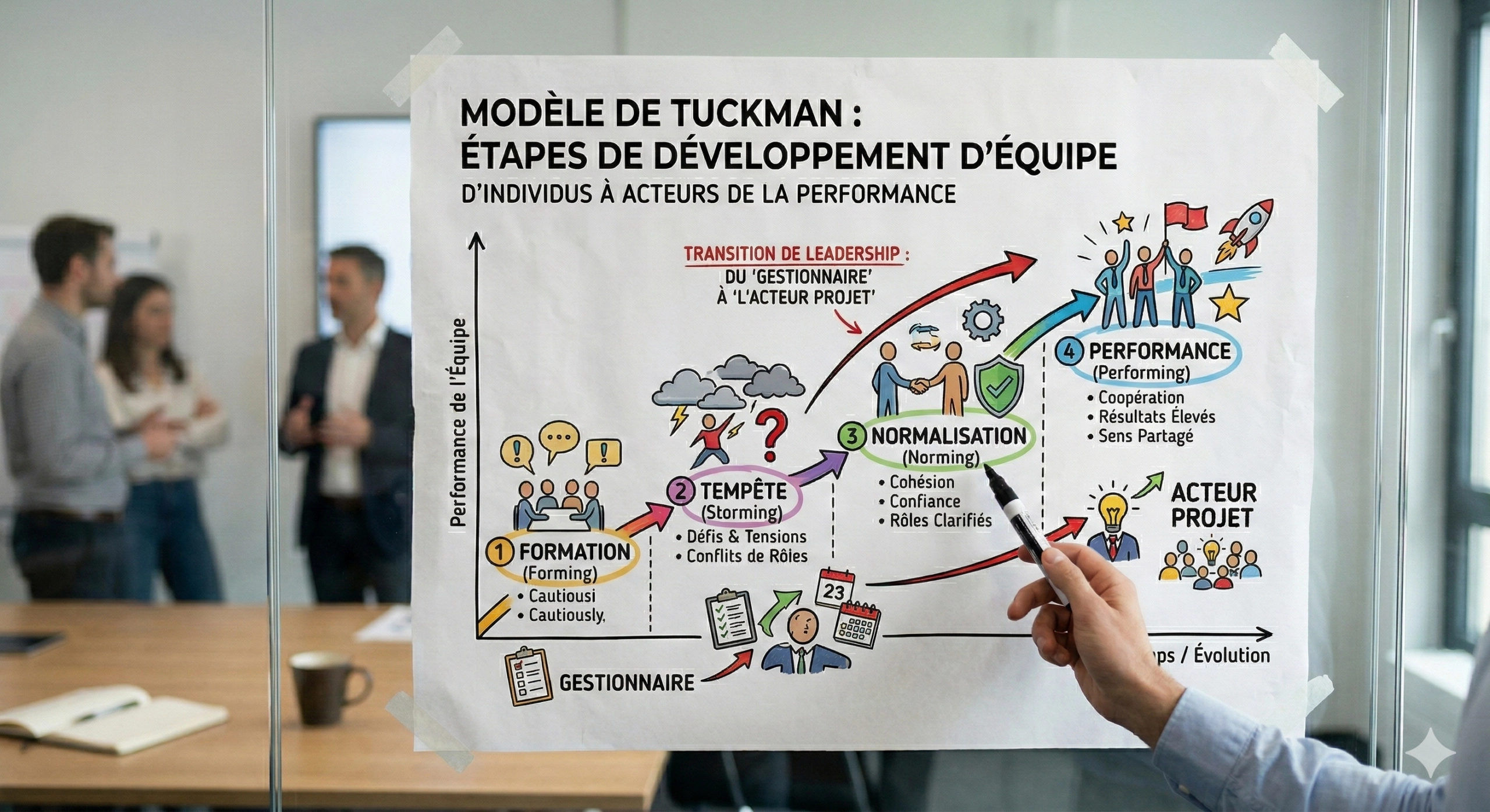 Un moteur est compliqué : il faut un expert technique pour le réparer. Une équipe projet est complexe : elle est vivante, changeante et imprévisible. L’Acteur Projet maîtrise cette complexité grâce à l’intelligence situationnelle. Il sait quand utiliser un style directif ou un style délégatif pour encourager l’autonomie via le modèle de Tuckman.